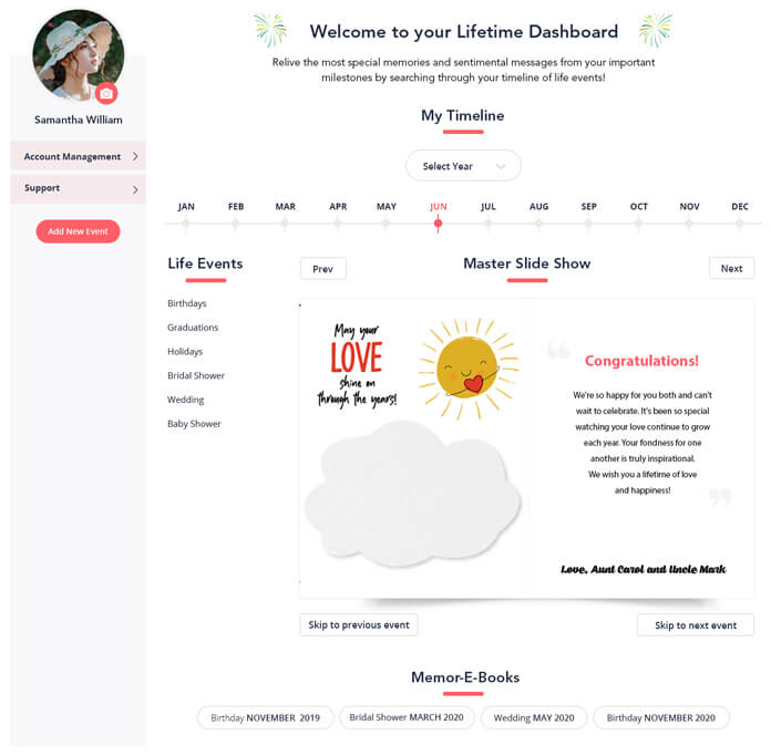 E-Bration introduces you to the Lifetime Dashboard: an online portal that preserves the memories of every single card and